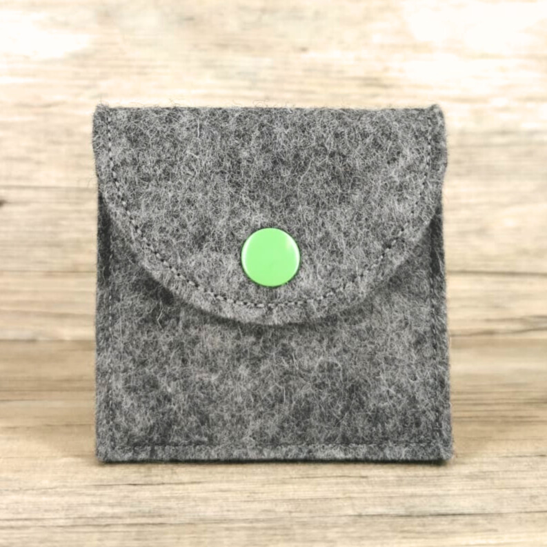 Hier abgebildet mit Wollfilz in Dunkelgrau meliert.