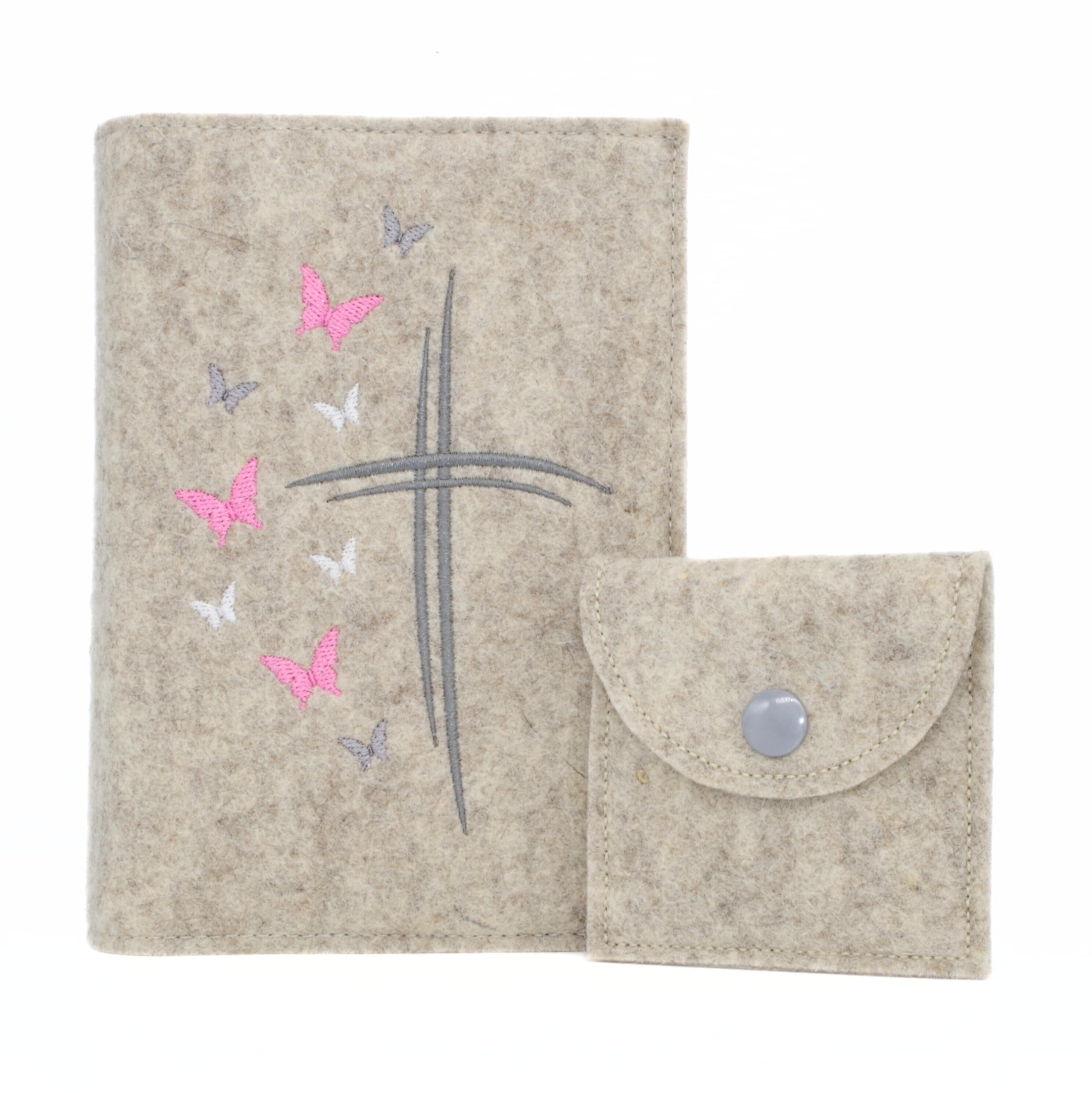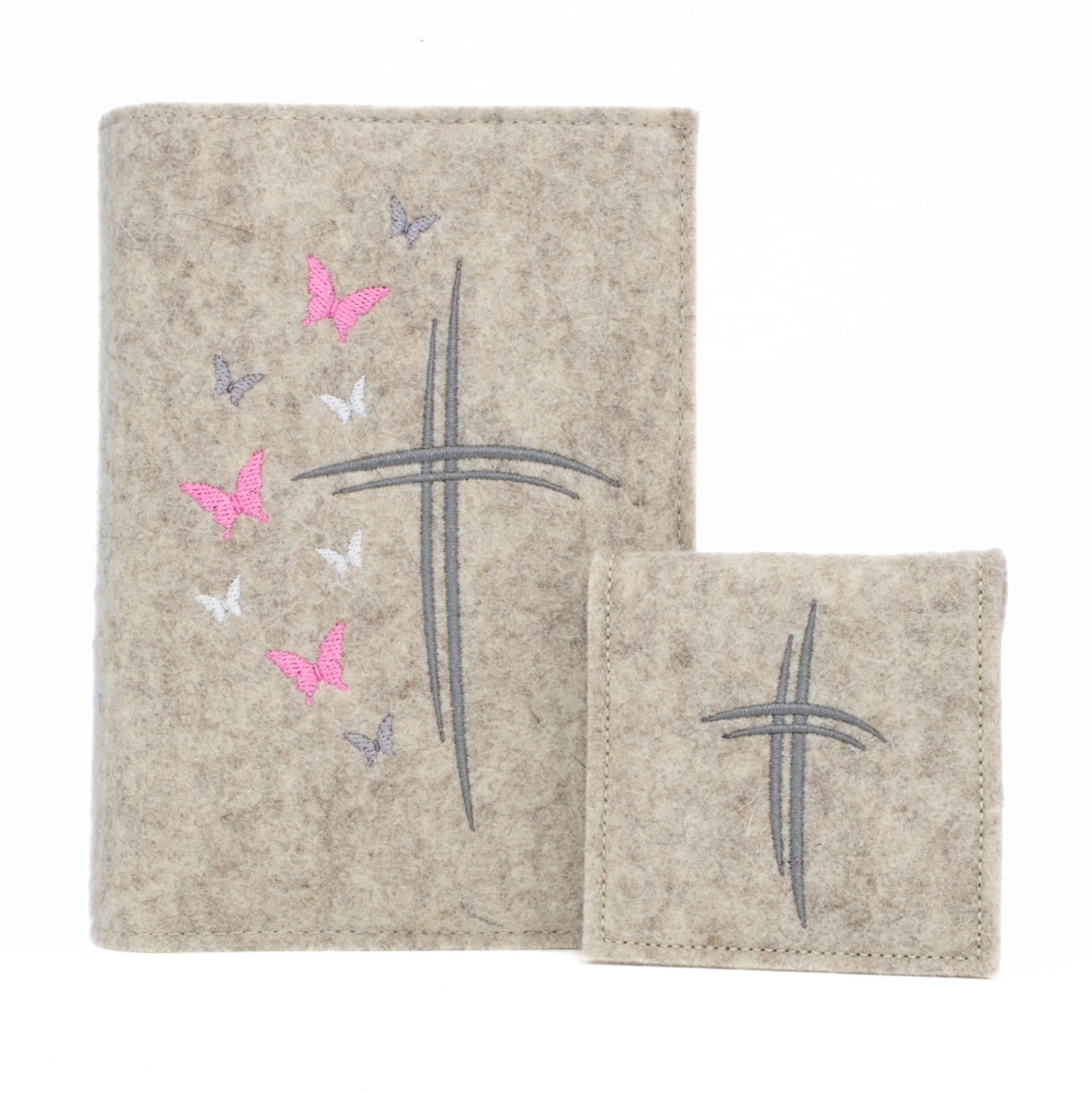 Wollfilzhülle für das Wosadnik (sorbische katholische Gebets- und Gesangsbuch) und für das Gotteslob.