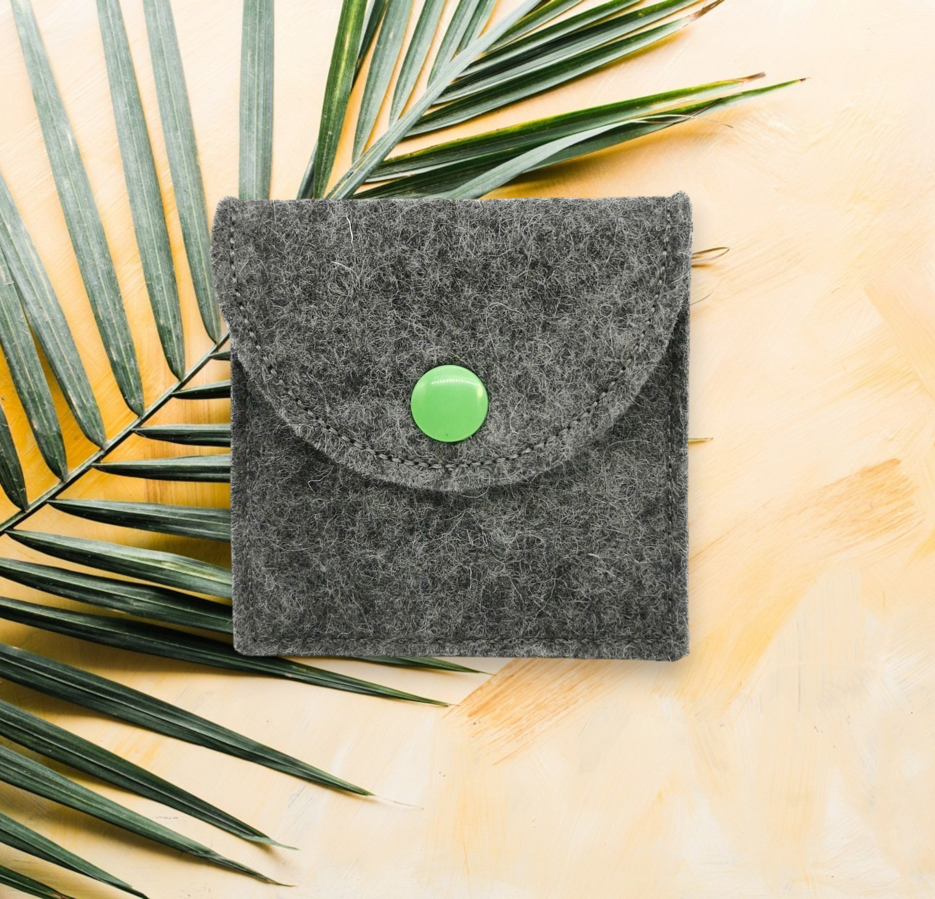 Hier abgebildet mit Wollfilz in Dunkelgrau meliert.