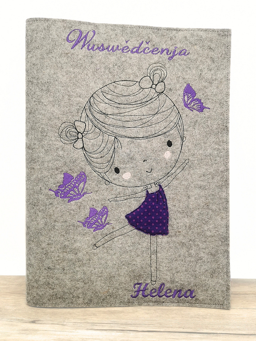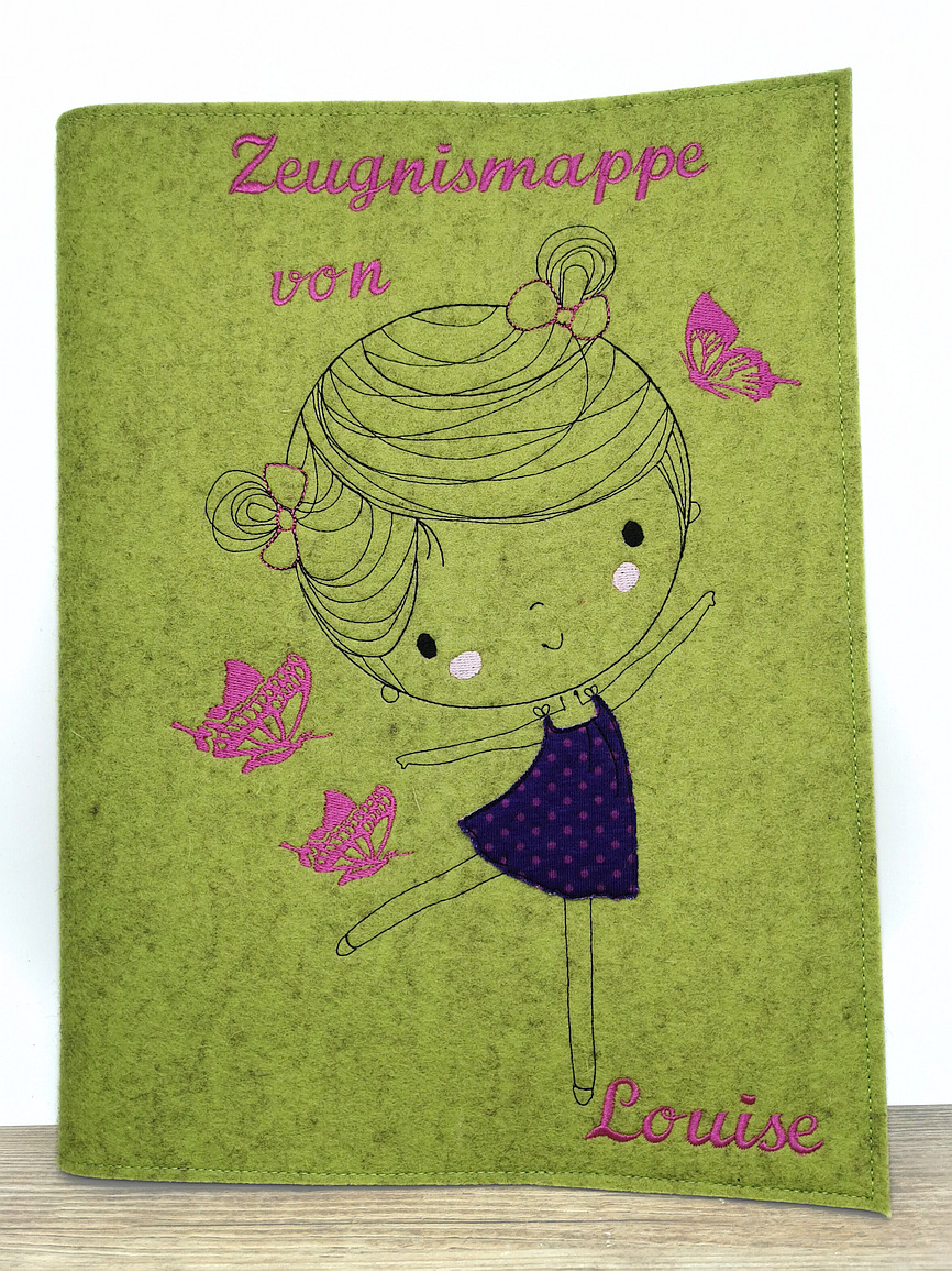 Meine Zeugnismappen werden in liebevoller Handarbeit aus Wollfilz genäht und nach deinen Wünschen personalisiert.